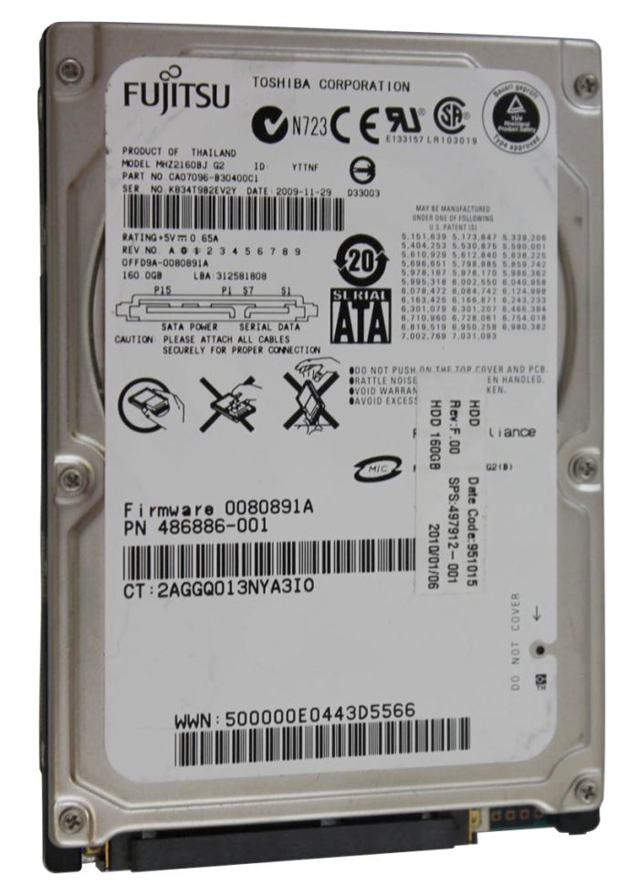 486886-001 | HP 160GB 7200RPM SATA 3Gb/s 2.5-inch Hard Disk Drive